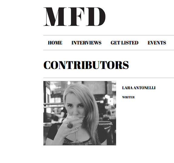 With its initial edition showcasing one of Maripol’s iconic photographs on the cover, this directory was set to be a hit from the get go. Now sold worldwide and available from bookstores in Melbourne and Manhattan, MFD was created by celebrity stylist, Angelique Max. She honed in on a niche in the marketplace of fashion, and I was more than willing to become involved and conduct interviews with the majority of the creatives that feature in all three publications. Inside you will find all of my interviews with amazing people, such as Cinday Gallop, Patti Astor, Glenn O’Brien, Steve Schapiro, Roxanne Lowitt, Mary Howard and Toni Maticevski. A phenomenal list of people, with the most creative, inspiring jobs on the planet. Thanks to the release of MFD coinciding with New York Fashion Week, I was lucky enough to have been invited to attend and cover some of the shows back in September of 2010 and 2011.