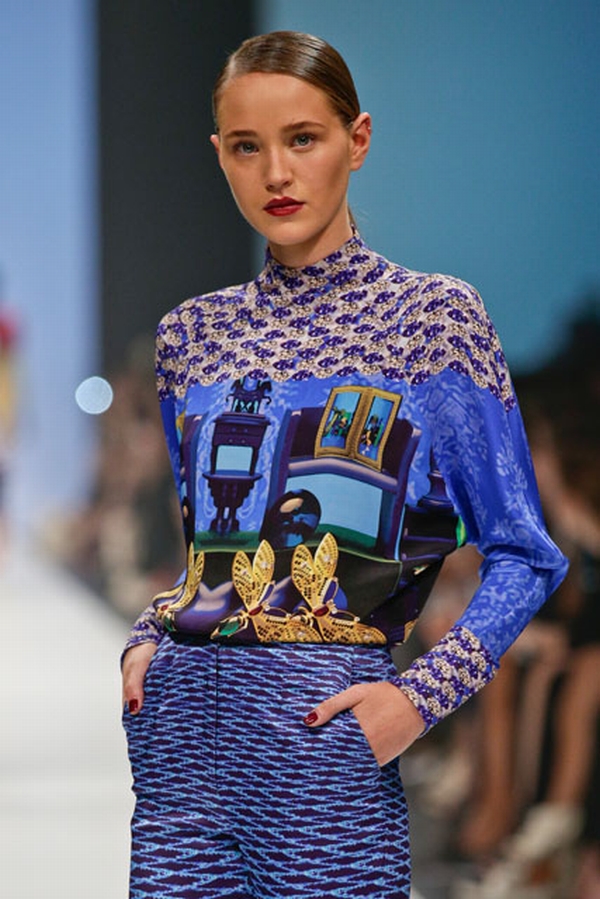 The most prolific designer to distinguish the catwalk was the remarkable Mary Katrantzou; the Greek born, London based sensation. Coming from a background seeped in international design prestige – from opening the Saint Martin’s College of Art & Design’s graduate show and consequentially having her prêt-à-porter collection shown at the A/W London Fashion Week in the same year; to having fashion royalty from Anna Della Russo and Sarah Jessica Parker to Miranda Kerr and Jessica Alba don her unique and cleverly crafted dresses. Katrantzou is stocked in over 200 global high-end fashion stores and online sites like Net-a-Porter and will now be stocked at David Jones in Australia. Katrantzou’s intricately pieced together garments, complete with illustrious prints, beading, embellishments, fringing, layers, structured shoulders and long paneled skirts juxtapose in wonderful harmony.