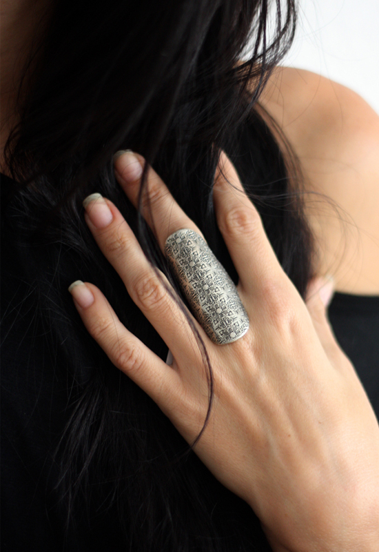 I have been delighted with how the embellished shield rings have turned out, I personally love larger, statement pieces of jewellery. But it can be challenging to create larger pieces that are comfortable to wear all the time. Often people are reluctant to wear something weighty and dominant. The response to these pieces has been great, as has the diversity of people brave enough to give them a go.