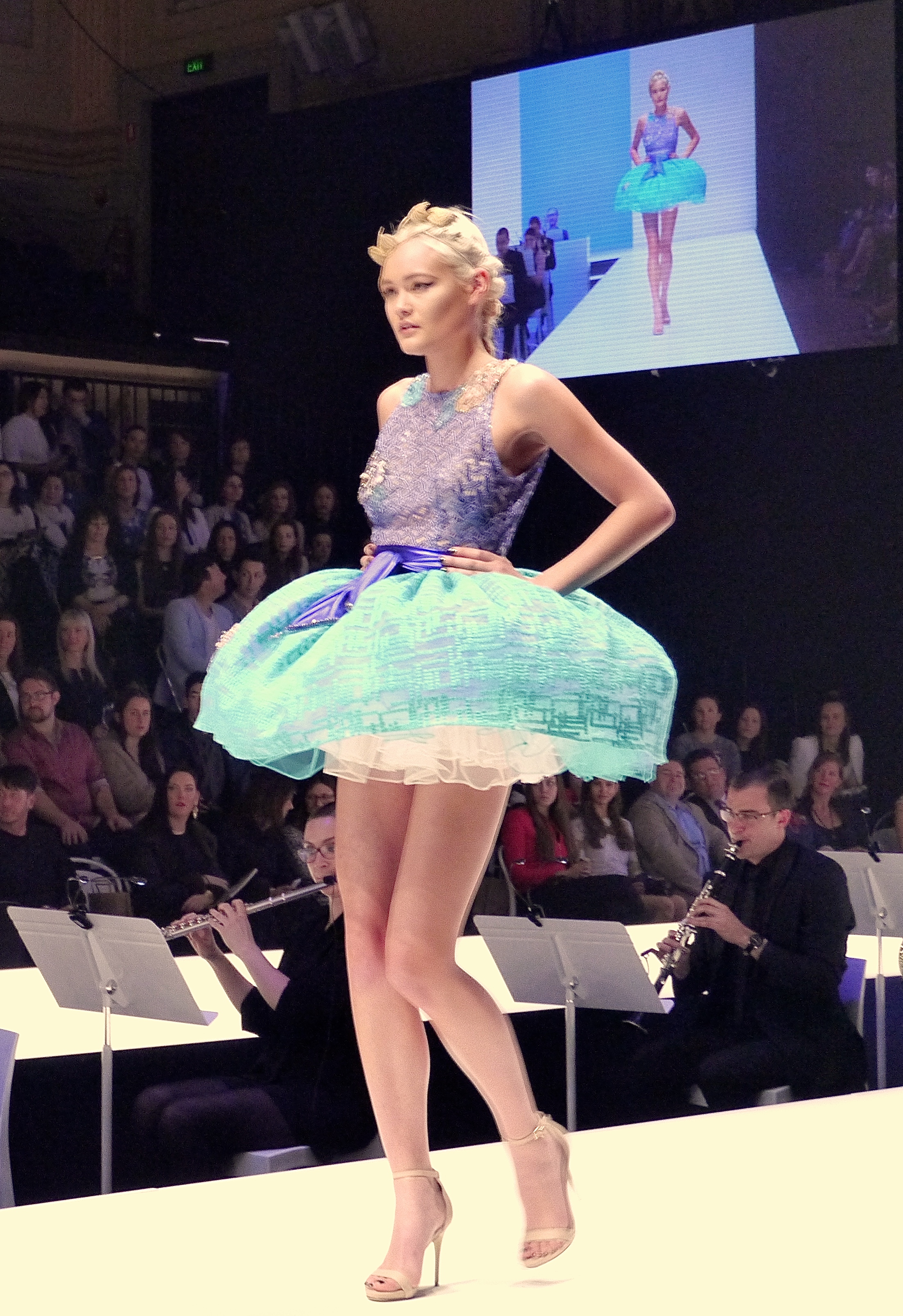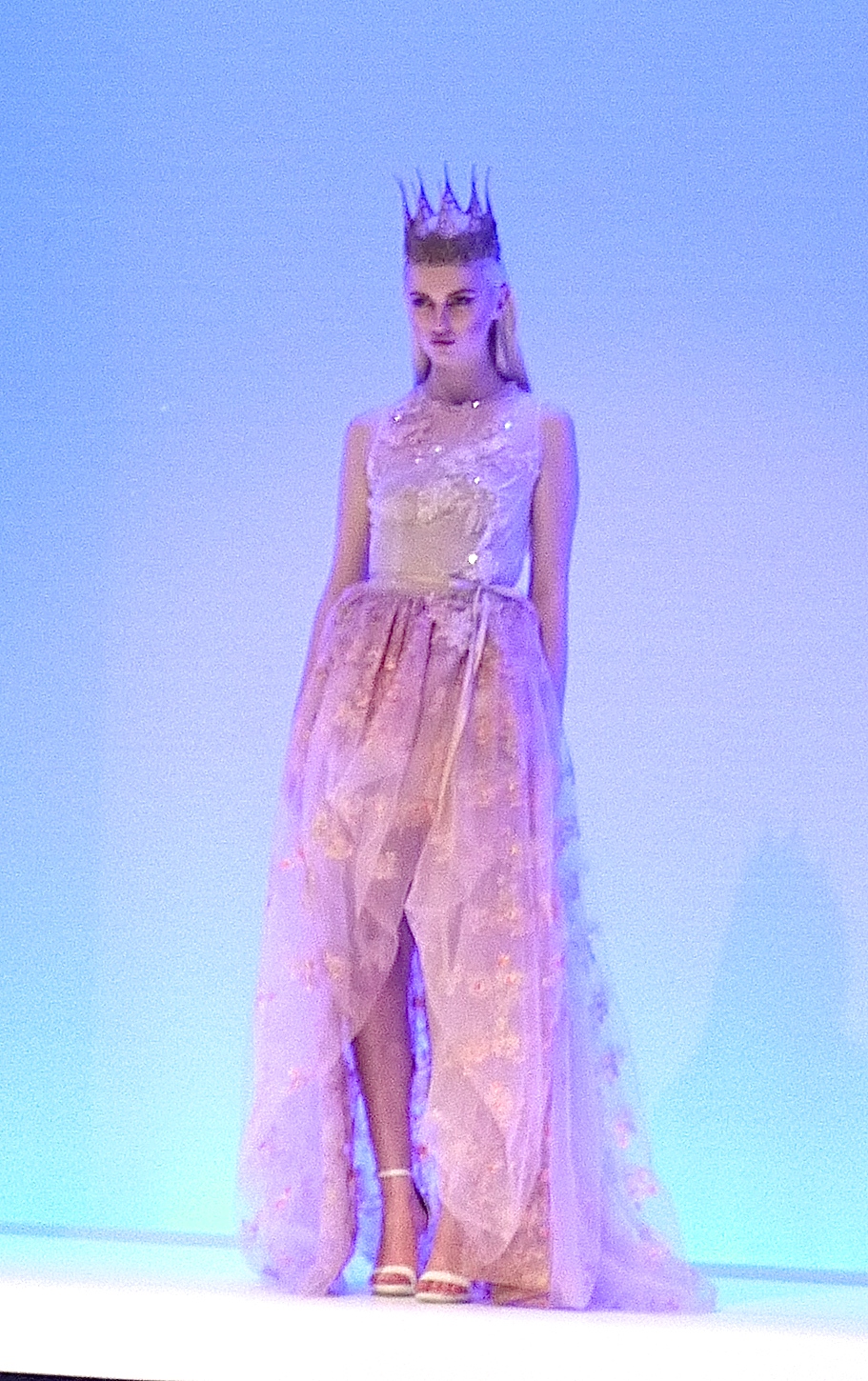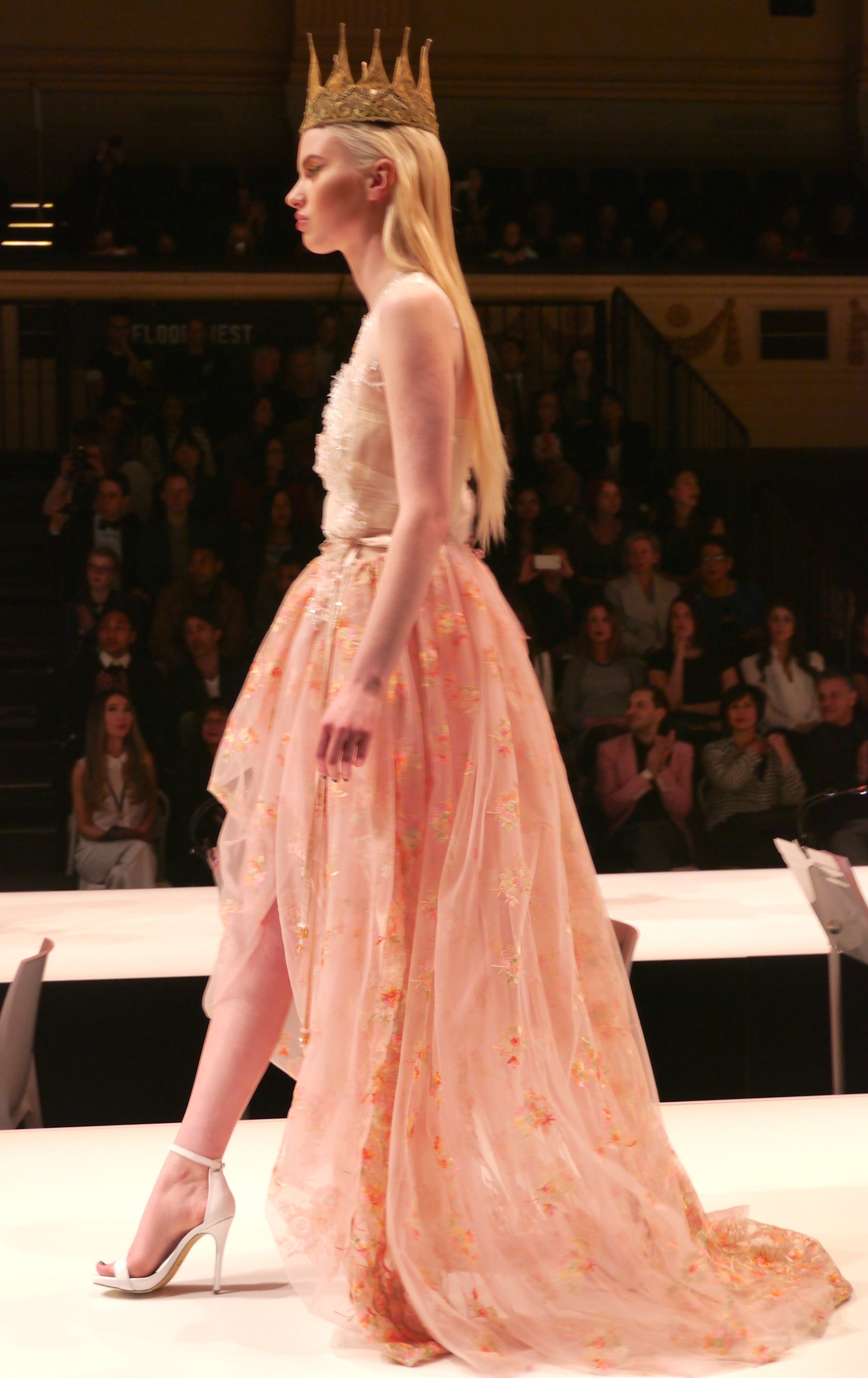 The finale gown was a show stopper worn by Elodie Russell topped off with a golden crown with sharp peaks – the embodiment of a twisted fairytale princess that set hearts a flutter as every girl dreams of a magical world where she can dress like a princess with power. Anaessia brings this fantasy to life.