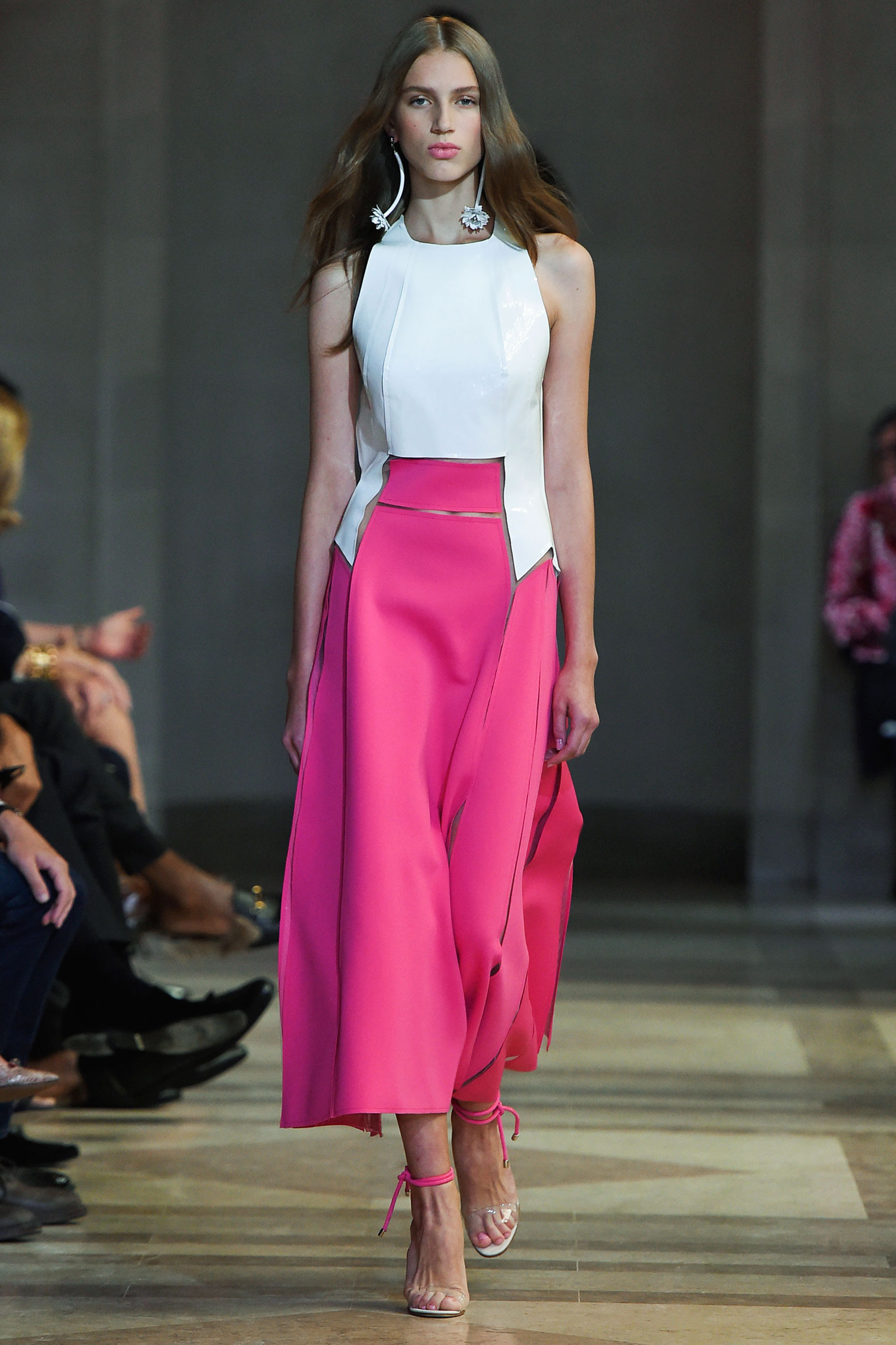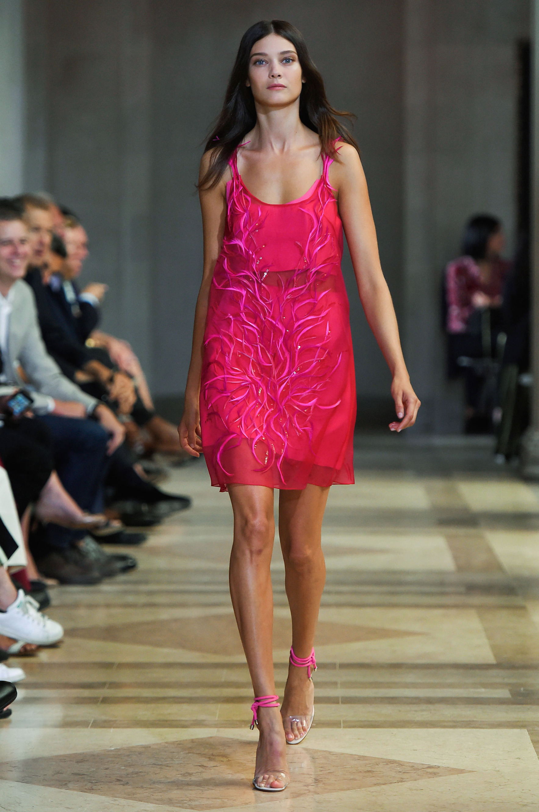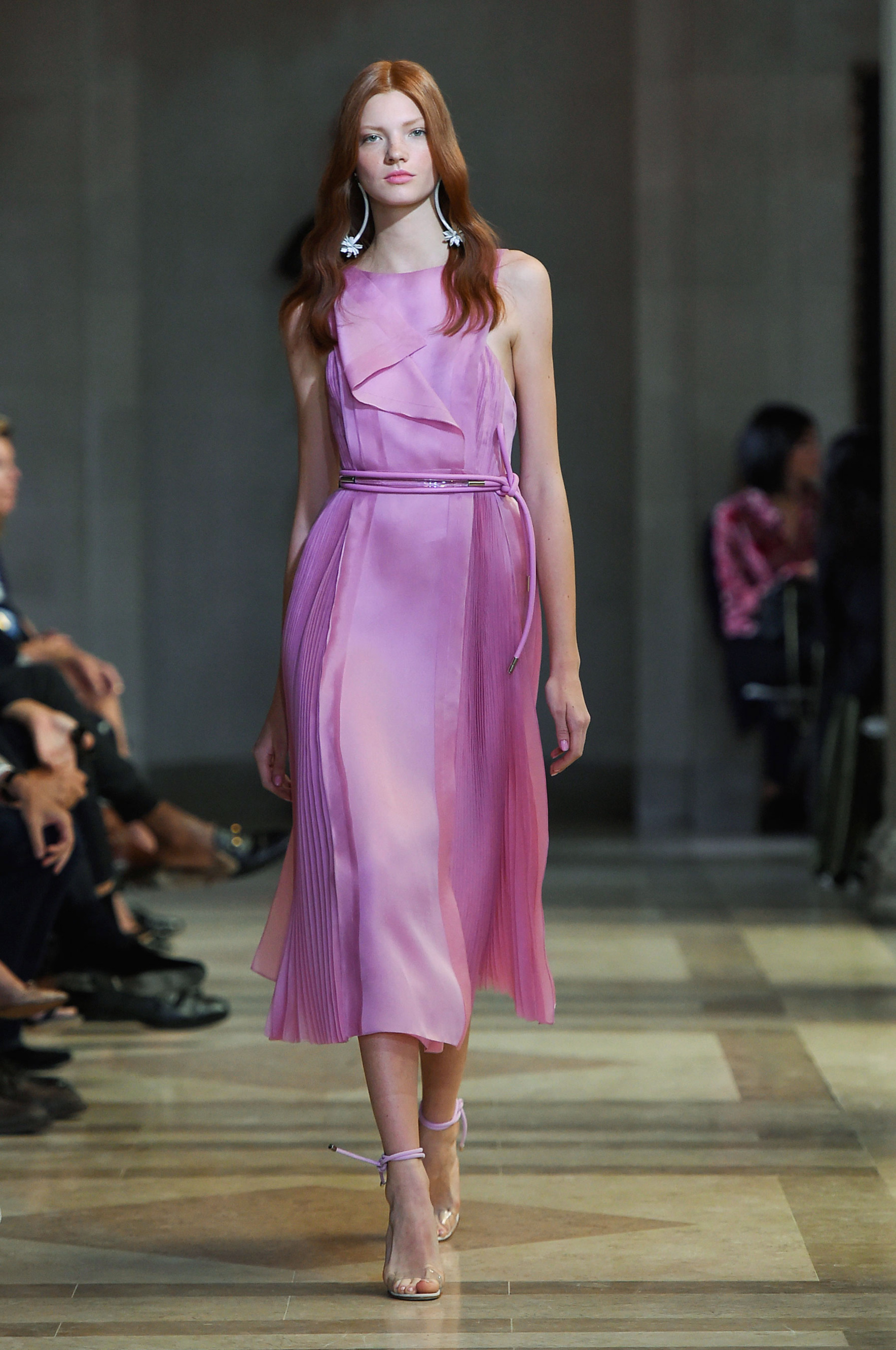 We’ve fallen head over pink stiletto’d heels in love with the latest Carolina Herrera Spring collection from New York Fashion Week. Consisting of a beautiful palette spectrum of pale blush to electric fuchsia, models floated down the Frick Museum catwalk in frothy silks, cascading frills and striking peek-a-boo pleats. Taking ‘pretty in pink’ to the next level, Herrera’s designs announced rose-coloured sophistication and modern seduction with a hint of romance for Spring/Summer 2016.