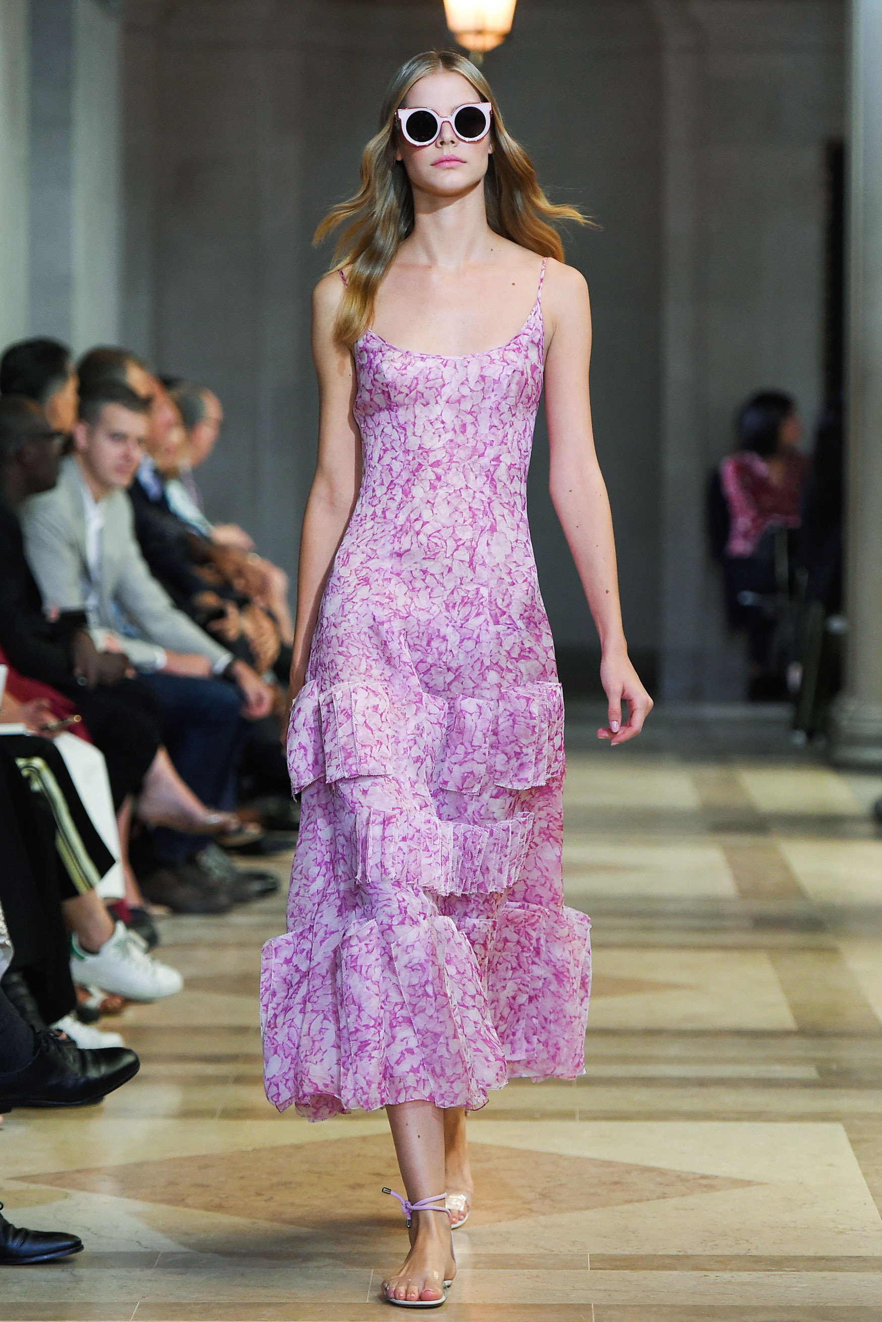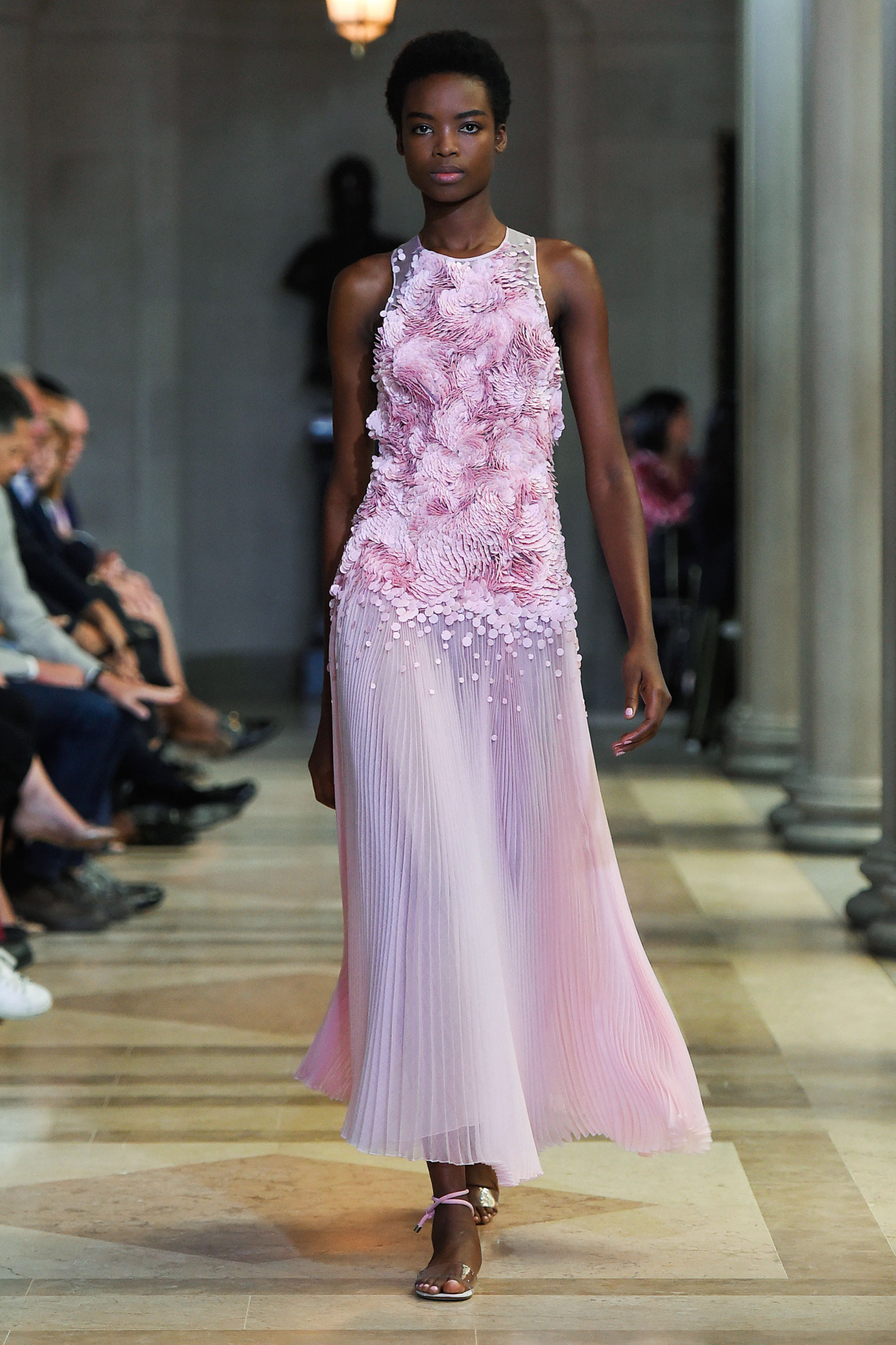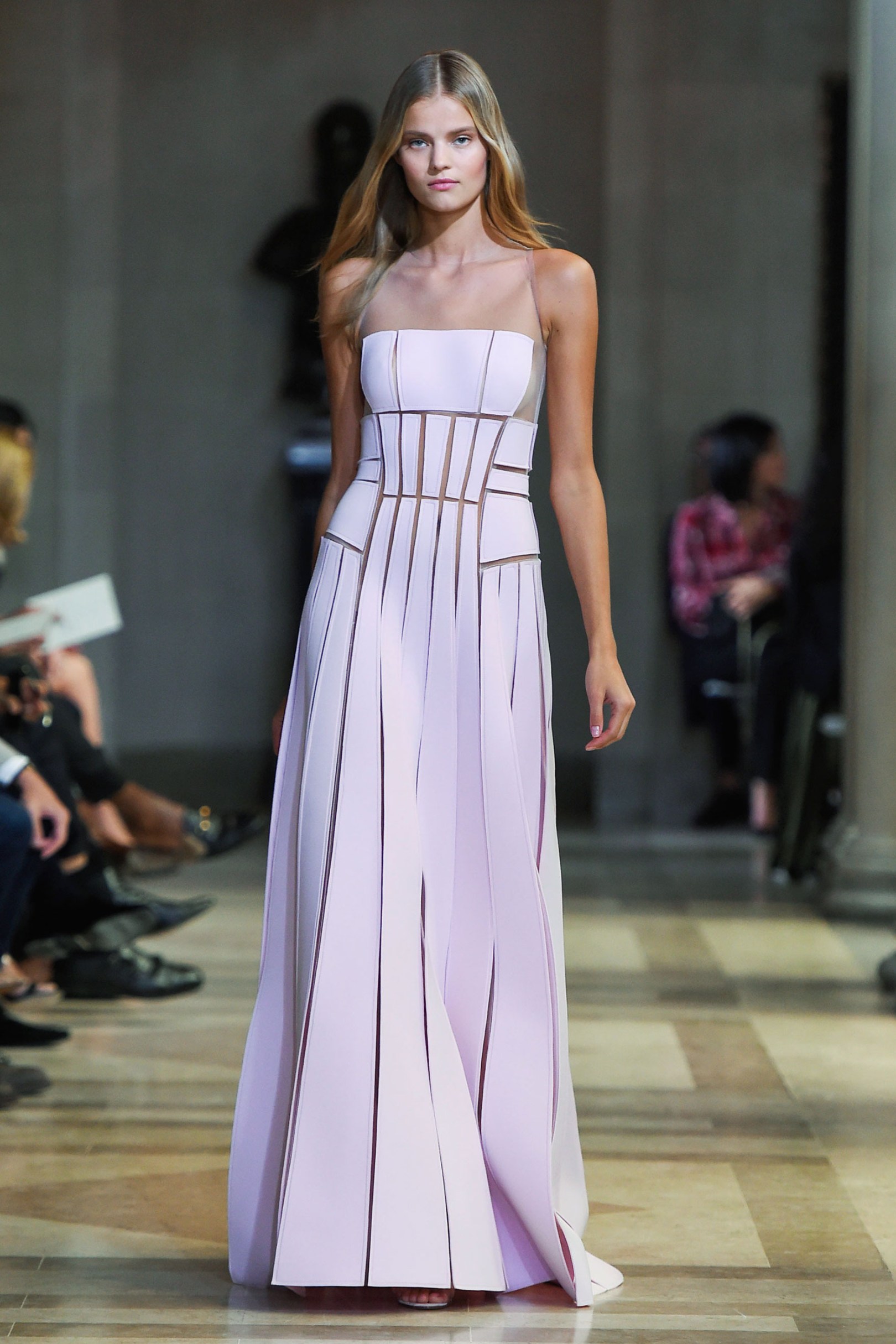 We’ve fallen head over pink stiletto’d heels in love with the latest Carolina Herrera Spring collection from New York Fashion Week. Consisting of a beautiful palette spectrum of pale blush to electric fuchsia, models floated down the Frick Museum catwalk in frothy silks, cascading frills and striking peek-a-boo pleats. Taking ‘pretty in pink’ to the next level, Herrera’s designs announced rose-coloured sophistication and modern seduction with a hint of romance for Spring/Summer 2016.