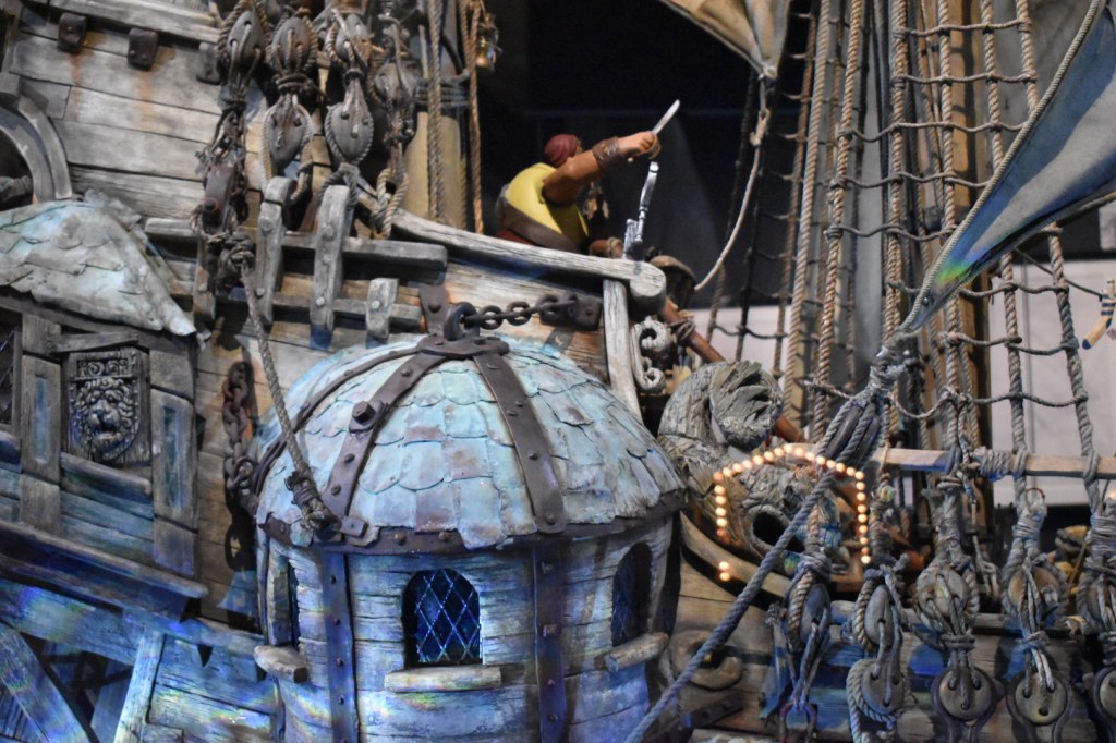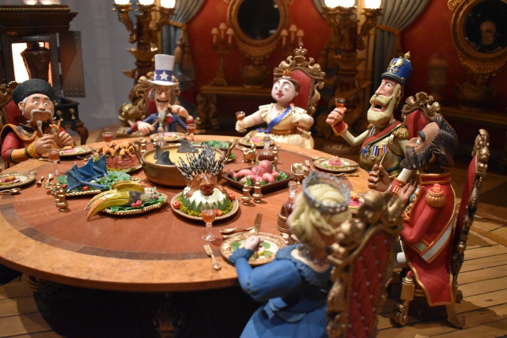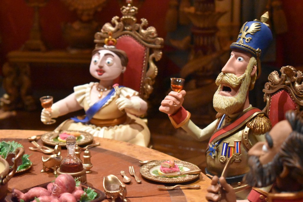 Marvel at the grandiose banquet feast headed by Queen Victoria, Pirate Captain’s quarters or magnificent 5-metre tall pirate ship from The Pirates! Band of Misfits. Wonder at the cosy lounge room, creature infested lab basement, bountiful veggie garden, grandiose Lady Tottington mansion or Reverend Clement’s vicarage from Wallace and Gromit (Curse of the Were-Rabbit).