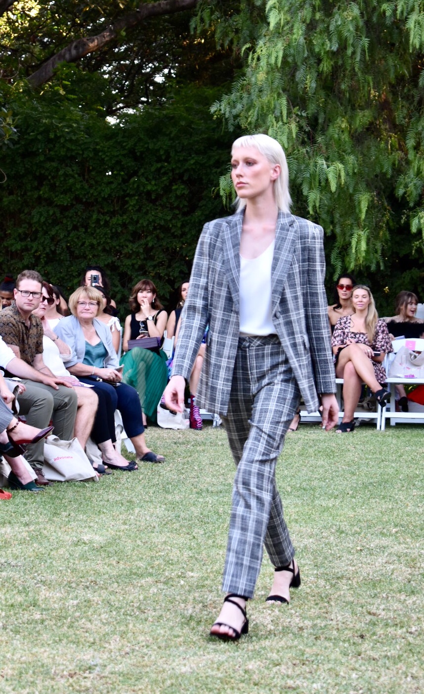 Anthea Crawford is one of Australia’s iconic designers, proudly maintaining ethical Australian manufacturing for over 40 years. This monochrome checked double breasted blazer suit with cigarette pants was a real highlight, as was the red power suit.