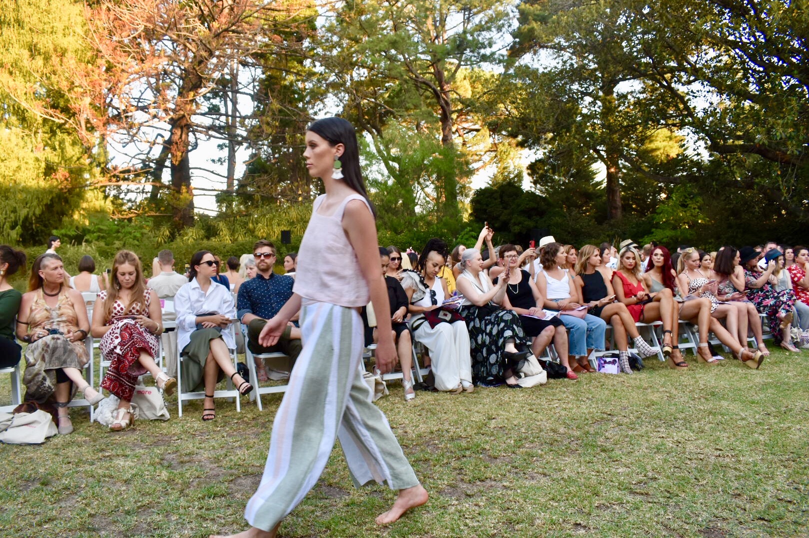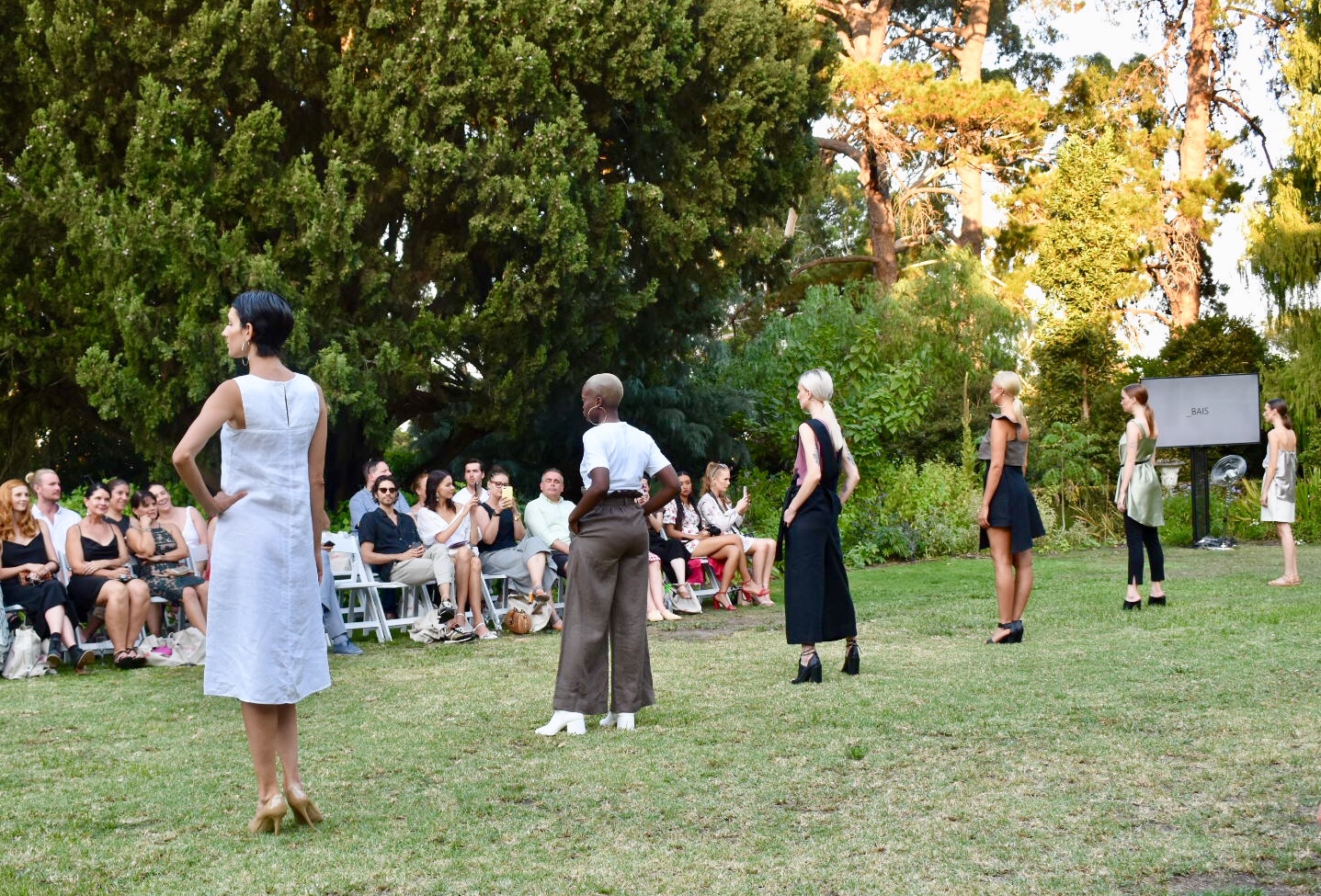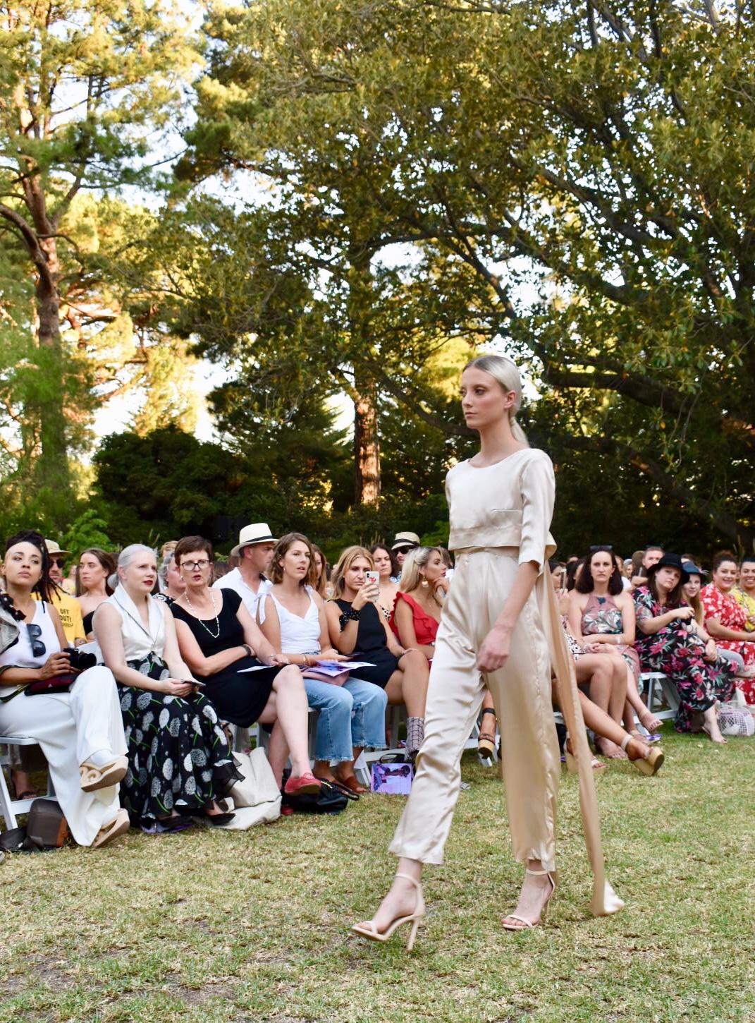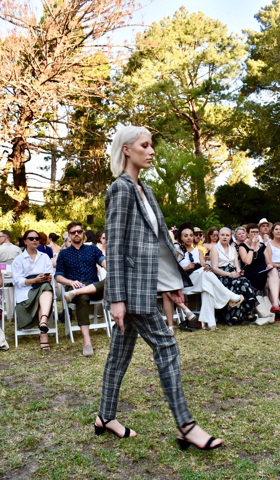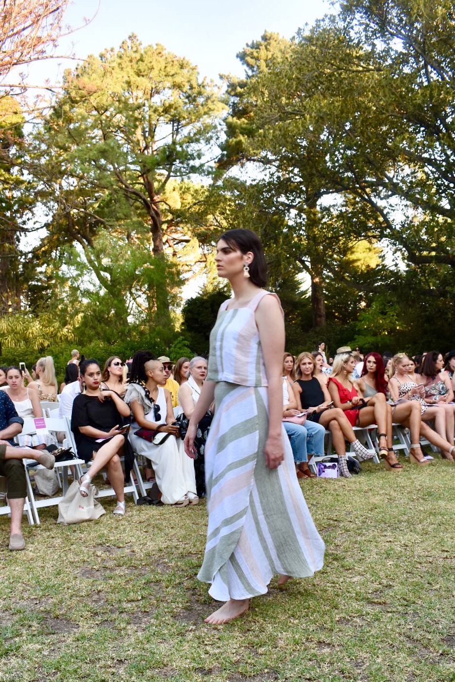 IDENTITY, presented by The Fashion Advocate (aka Claire Goldsworthy) was held at Como House on a sweltering Autumn evening, and it was a breath of fresh air. This deliciously laid back soiree was a stark contrast to the notoriously fast paced and busy atmosphere of Fashion Week. The ambience was a gorgeous introduction to what we were to enjoy on the grassy runway. With the historic homestead as our backdrop, the models walked out as the sun dropped (even if the temperature didn’t) and we were introduced to some known and some new Australian designers, all that were impressive in their mindfulness of consumption. Every one was tackling sustainability with their eco-conscious collections – without compromising on quality (quite the opposite actually, every creation is luxurious due to its hand-made, one of a kind or sustainable material nature).