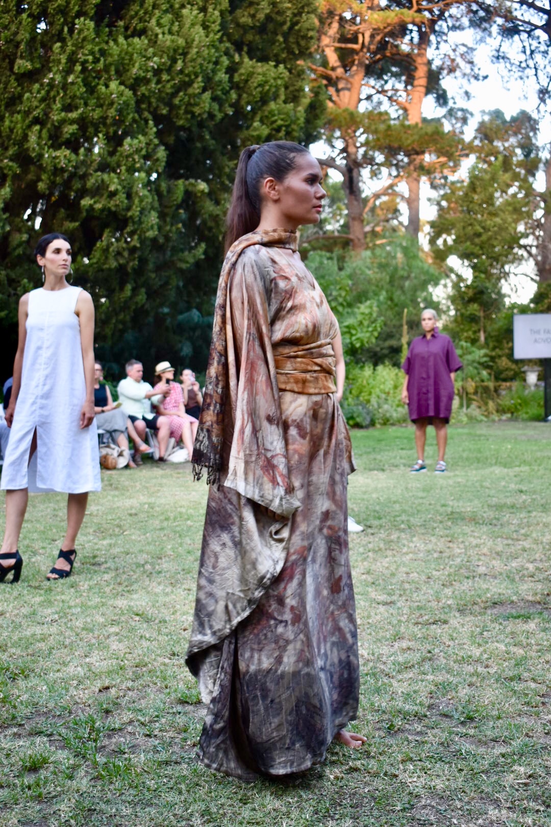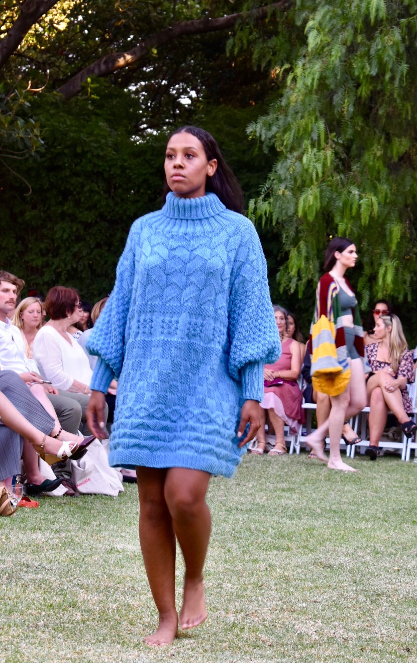 Birdtribe showed us why their name includes Wearable Art in the title, as the models looked like goddesses walking barefoot on the grass. The label promotes making a strong statement about inequality and human rights issues through clothing, as well as using natural plant dyes and fibres in their collections.