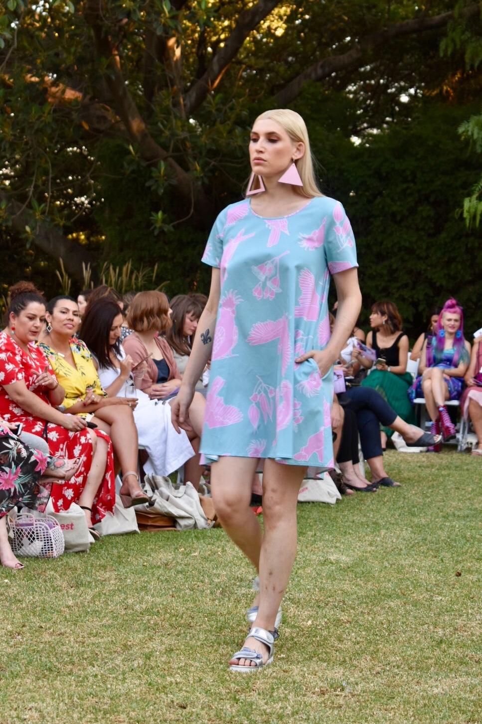 I will happily say yes to wearing pink cockatoos on a shift dress any day of the week. This look was so bright and happy – perfect for an afternoon garden party. Each limited-run collection from Colour Coded is designed and made in Melbourne using natural fibres.