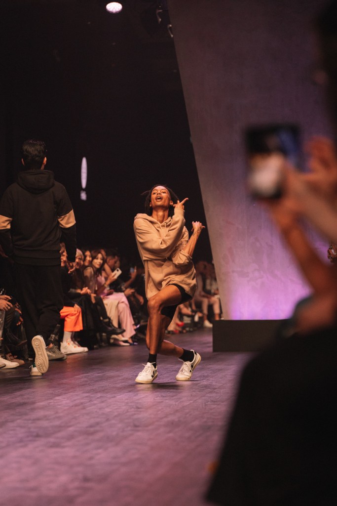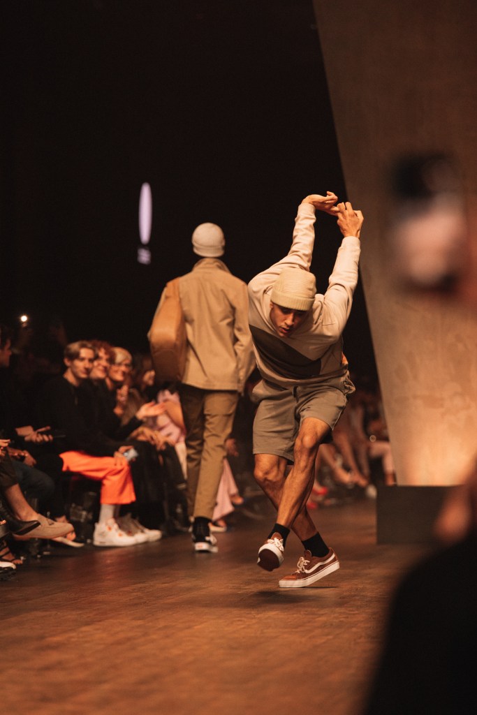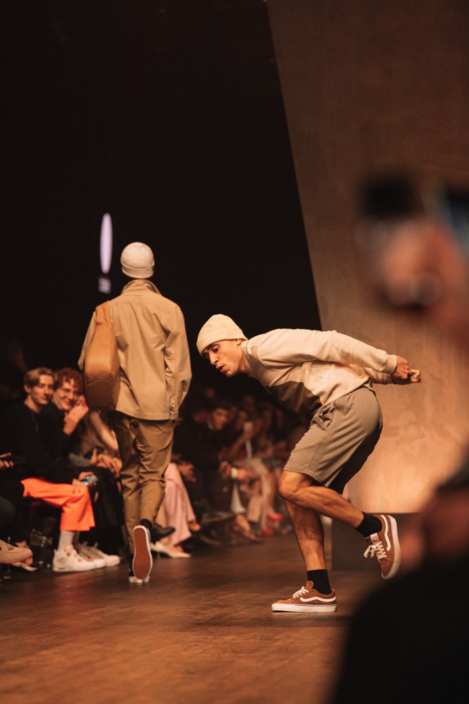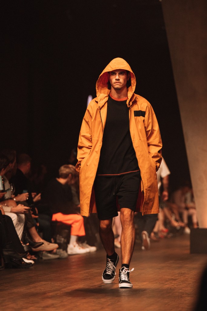 Founded in 2006 and pronounced ‘basic’, Bassike feels anything but. Featuring pops of orange, black and beige, the collection displayed high quality sustainably sourced wardrobe essentials that lift the streetwear game and showcased clothes so versatile and comfortable, you can even breakdance in them.