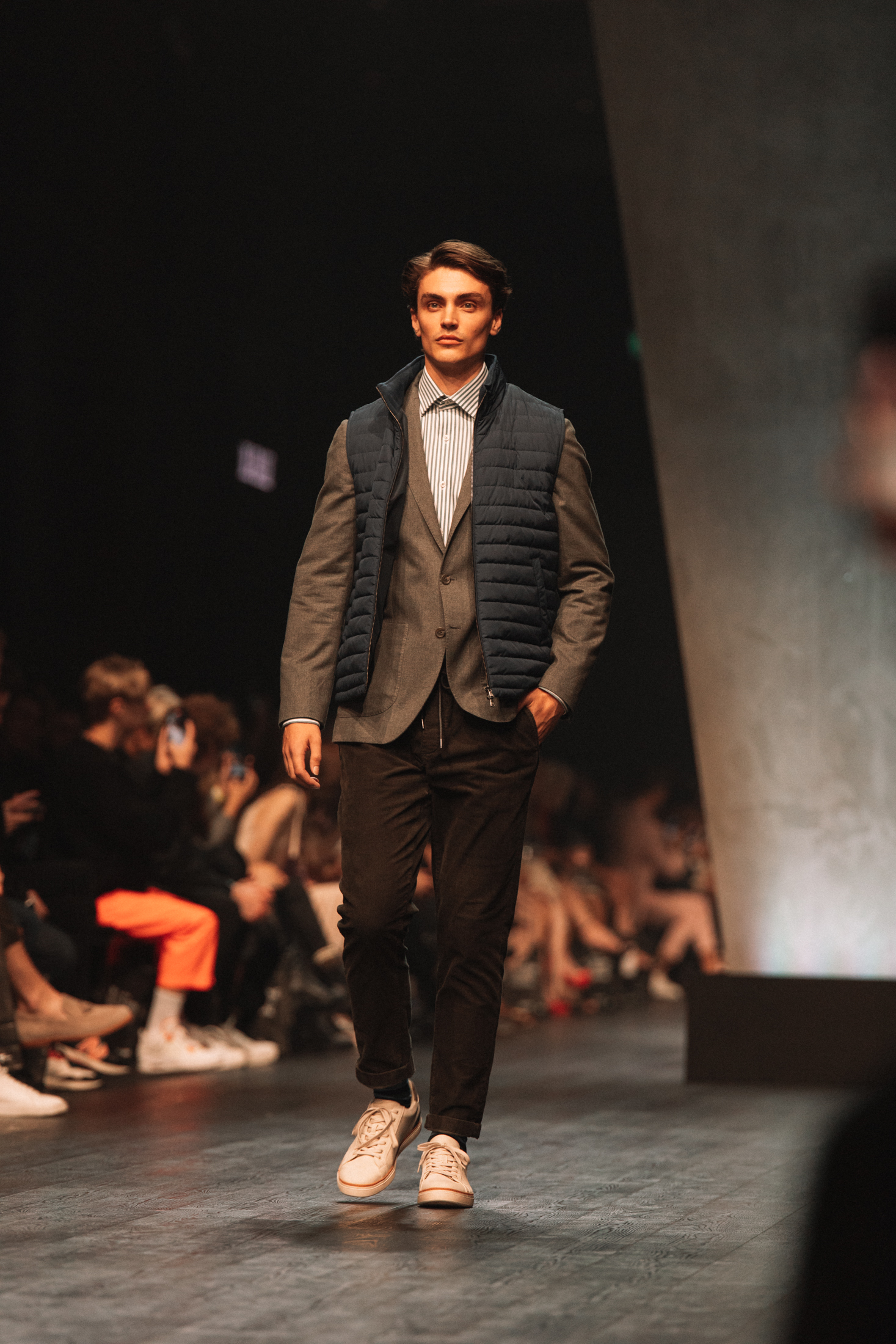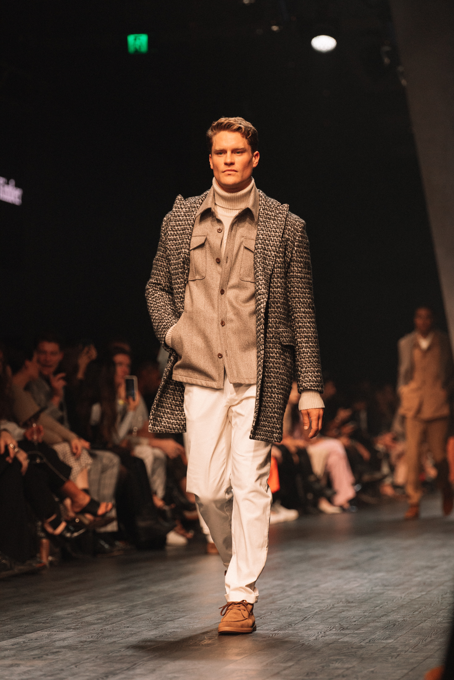 MJ Bale garments have a distinct quality to capture everyday wear that houses style, comfort and flair. Their natural fibre tailoring expertise is evident, as outfits highlighted Australian merino wool (of which the brand is synonymous), as well as Australian cotton. Stand outs included suit jackets paired with chinos and patterned button-down cardigans.