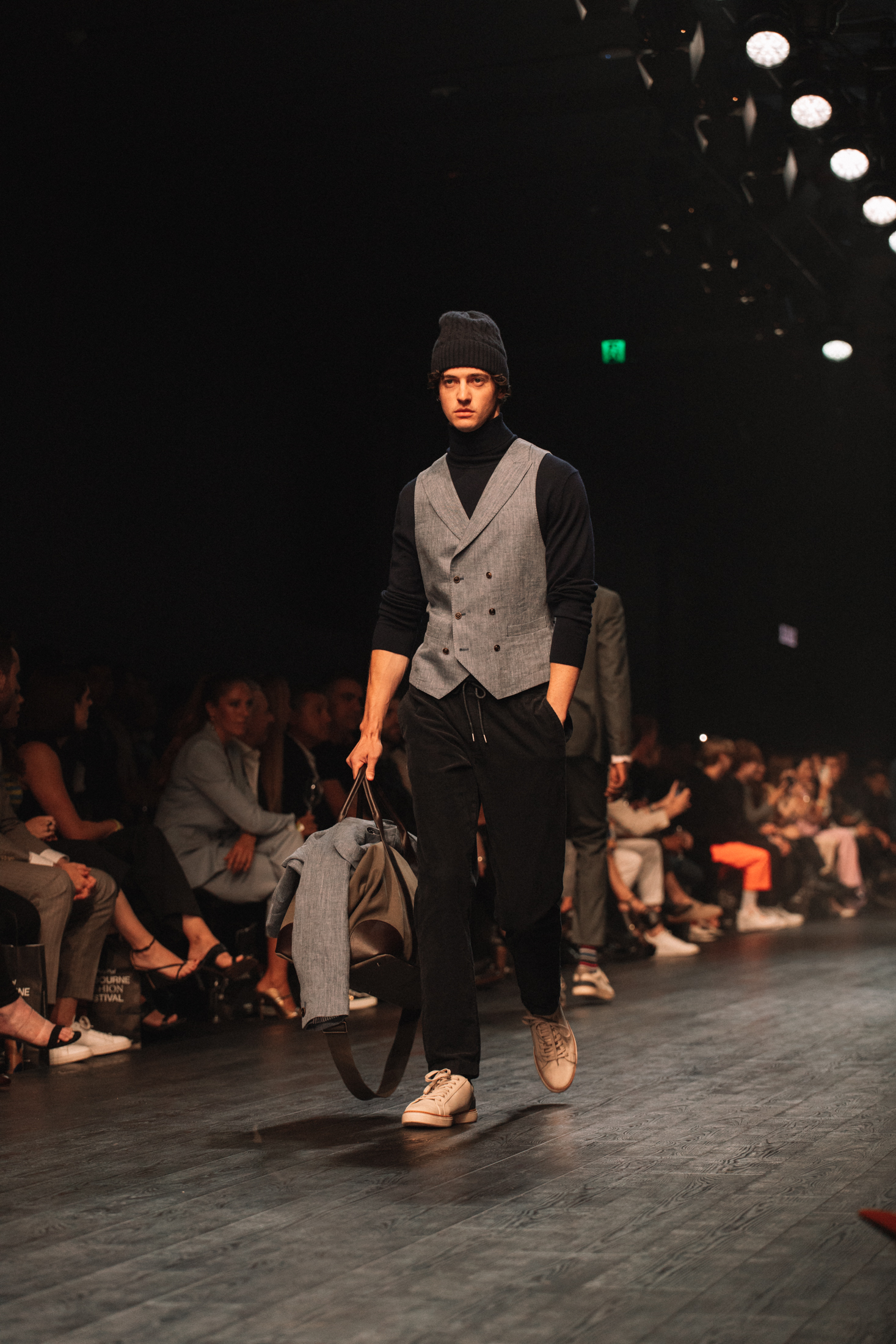 The PayPal Melbourne Fashion Festival was the perfect event to jump start our fine city into its renowned party mode. It was glorious to see familiar faces and new ones mingling at Fed Square and at ACMI to support our local fashion talent. Runway 4 was one for the boys, with debonaire, handsome, edgy and conscious fashions featuring on the runway.