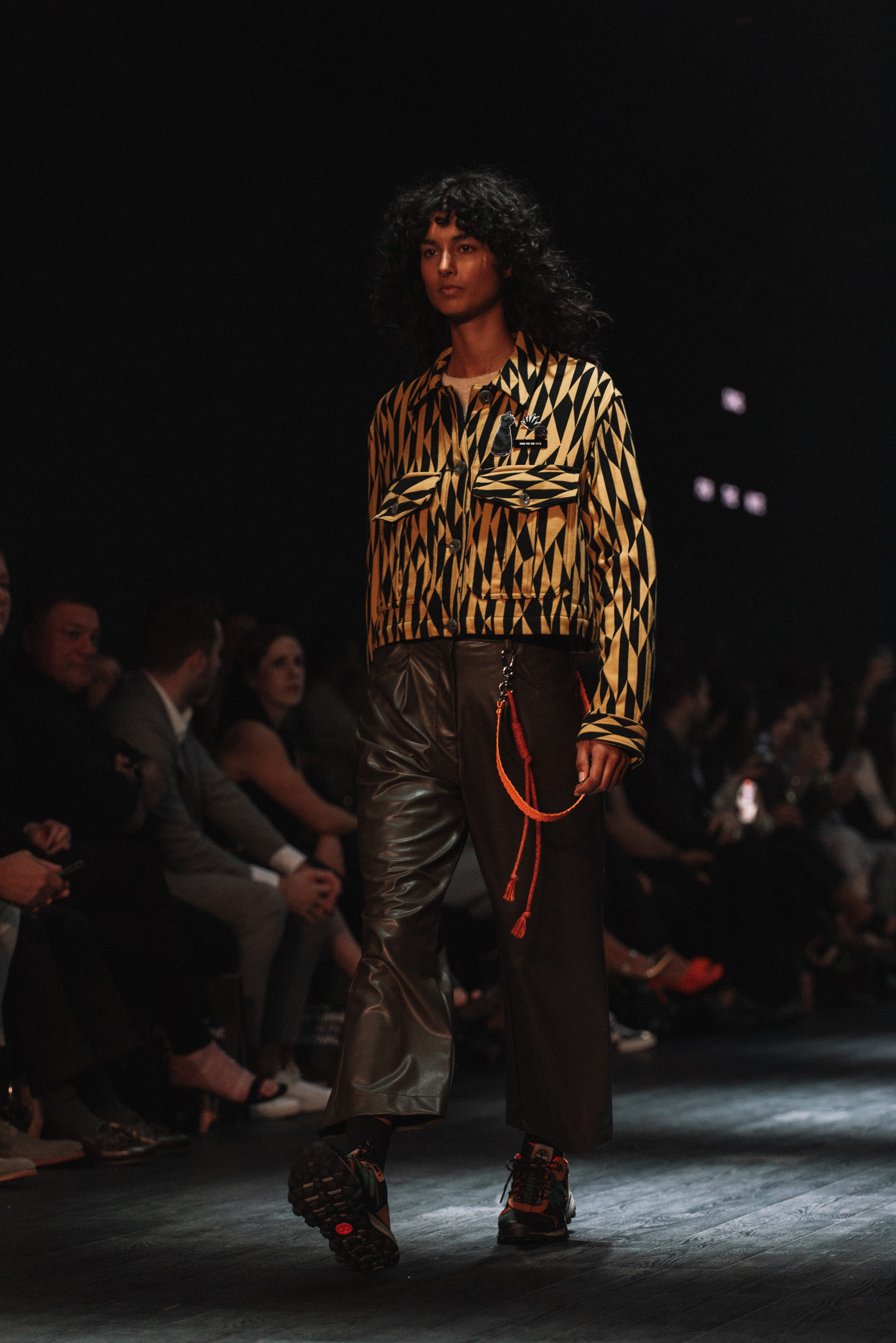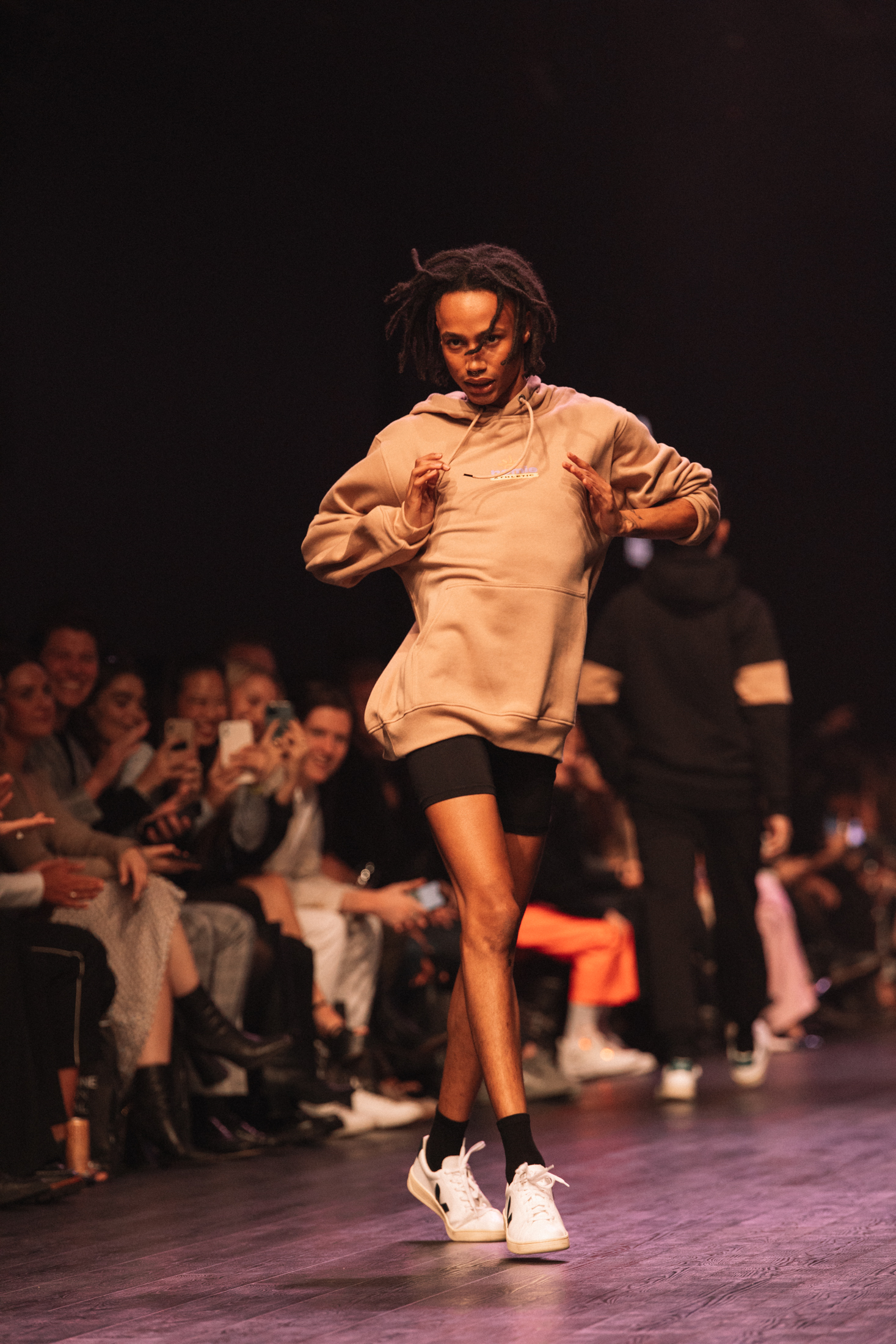 Founded in 2006 and pronounced ‘basic’, Bassike feels anything but. Featuring pops of orange, black and beige, the collection displayed high quality sustainably sourced wardrobe essentials that lift the streetwear game and showcased clothes so versatile and comfortable, you can even breakdance in them.