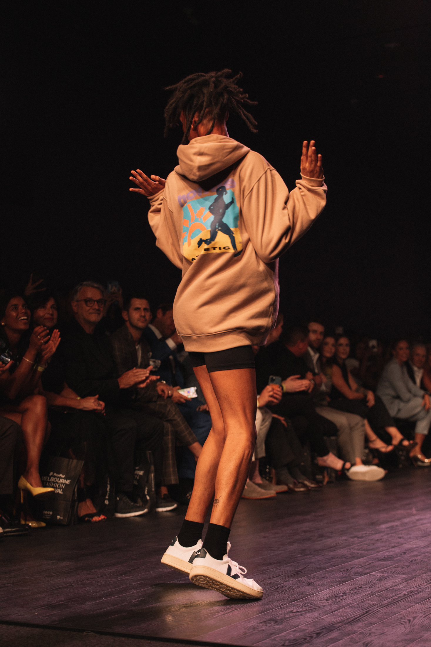 To close out the runway, Melbourne label HoMie brought the energy, sass and fun with models dancing and exhibiting their fierce personalities down the catwalk. HoMie is an important brand, as it is a not-for-profit supporting young people affected by homelessnes; equipping them with the skills, confidence, and experiences to be more work-ready and better prepared for their future. Featuring sweats and hoodies in pops of vibrant colour, HoMie embodied hope, happiness and a sense of self that is so important – being comfortable and confident both in what you wear and how you feel inside. Pure joy in material form and an important community led inspiration to get behind!