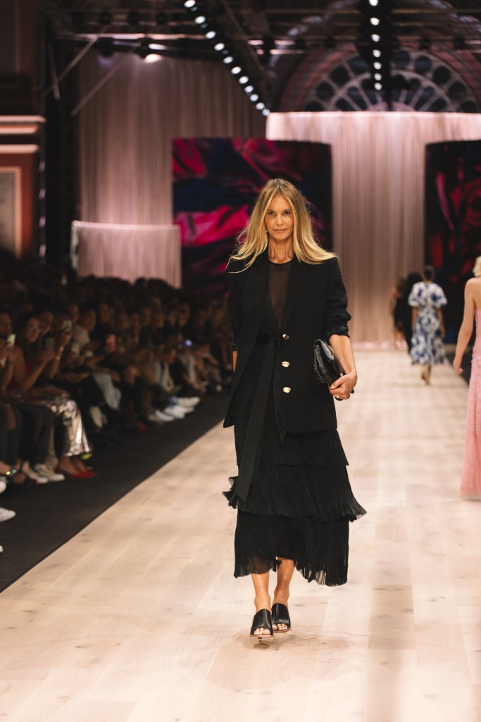 The global fashion icon that is Elle MacPherson returned to the runway for the opening night of the PayPal Fashion Festival’s Premium Runway shows. Aptly named ‘Triumphant’, the runway event exceeded all expectations as the supermodel, who is turning 60 this month, elegantly walked down the catwalk to joyful applause from a fashion crowd in awe of her beauty and grace. Elle opened the show with a Viktoria & Woods outfit, which featured chic silk pants coupled with a luxuriously shaggy jumper and long woollen coat in golden browns, with her quintessential long flowing blonde hair and super cool wide-rimmed sunnies.