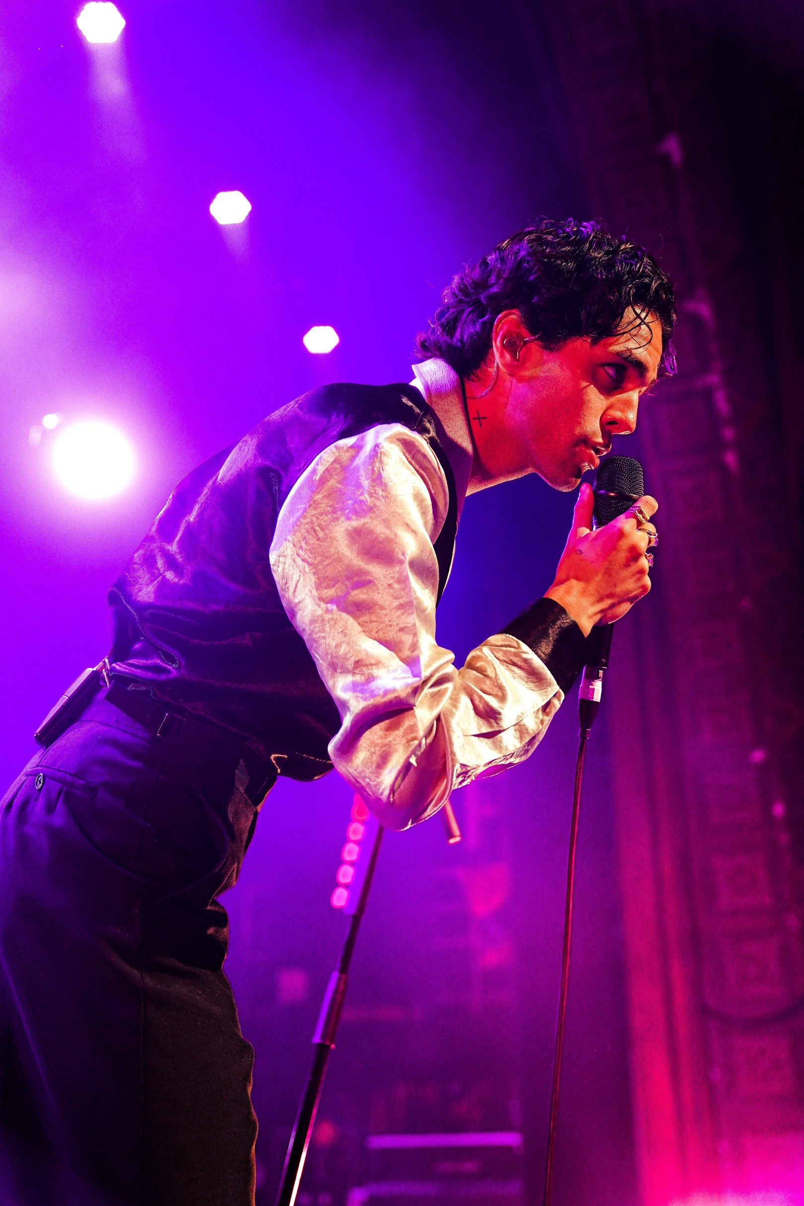 A few moments later, the stage lights dimmed and an old tape of a familiar voice echoed into the distance. Talking about love and heartbreak, this man’s voice evoked loud and excited cheers from the audience, without a single break in the raucous applause. As the band slowly walked out in black and white suits, a slow soundscape of keyboard and percussion set the scene for a harmonious voice to come. Stephen Sanchez had arrived.