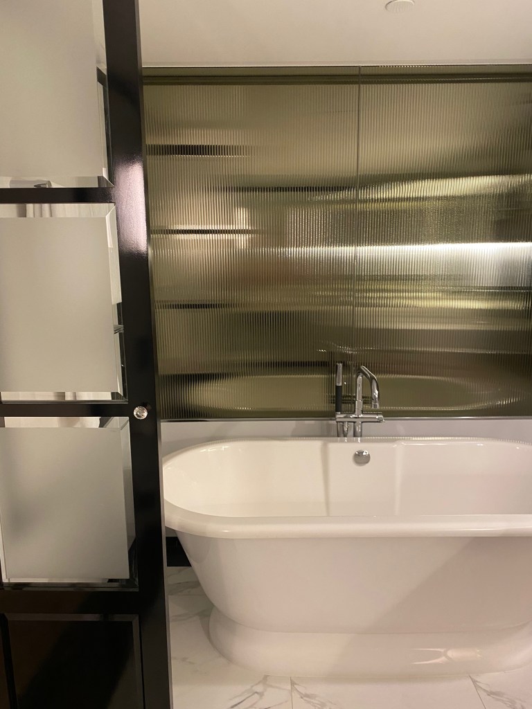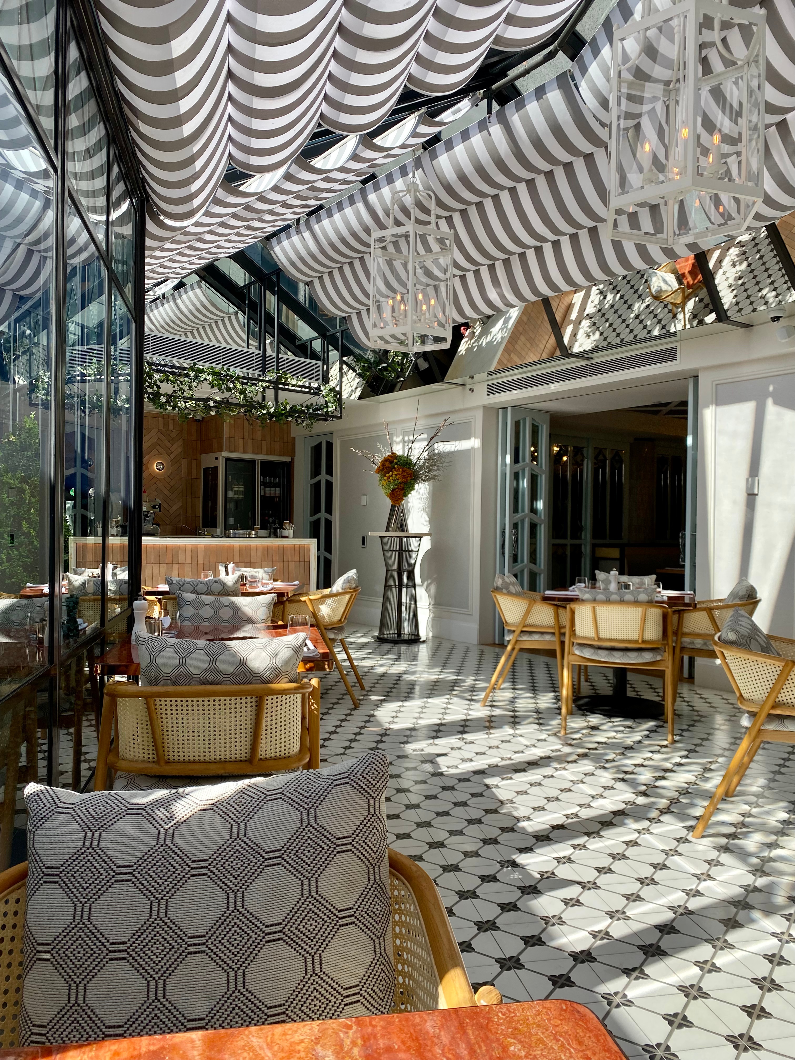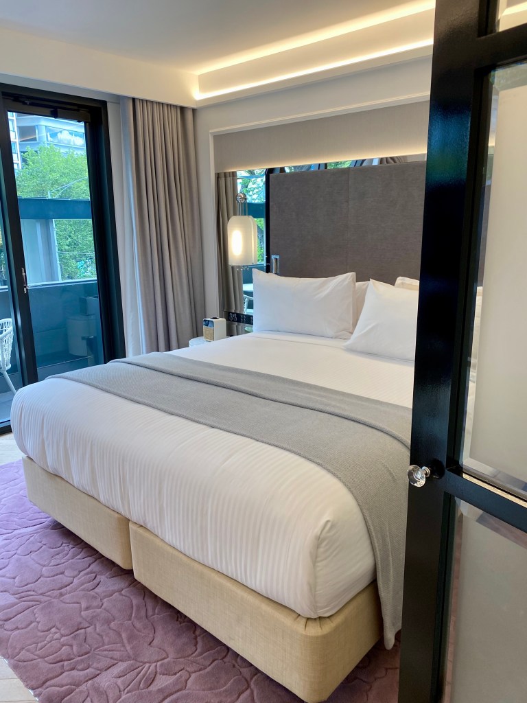 I had the pleasure of staying in the Boulevard Suite, complete with spacious entrance hall, separate lounge room, high ceilings, giant deluxe bath tub, super comfy king bed and gorgeous terrace. The bathroom boasts Italian Carrera marble with Molton Brown amenities, giant freestanding bath tub, double vanity with large mirror inlaid with lighting, and generous walk-in shower. It was a light-filled and glorious suite, reminiscent of Parisian luxury paired with Melbourne flair. Perfectly positioned along St Kilda Road, you can look out at the action on your terrace (complete with table and cushion-padded chairs) or close off from the world at the press of a button (did I mention how much I loved the electronic curtains and master light switches?). The beveled french doors leading to the interior rooms added an extra level of charm, as did the gorgeous decor, and the cleanliness of the entire hotel did not go unnoticed – it was spotless. Delicious macaroons and Perrier sparkling water on arrival, Nespresso machine, turn-down service, and the inclusion of Taittinger Champagne on the mini bar menu were absolute treats.