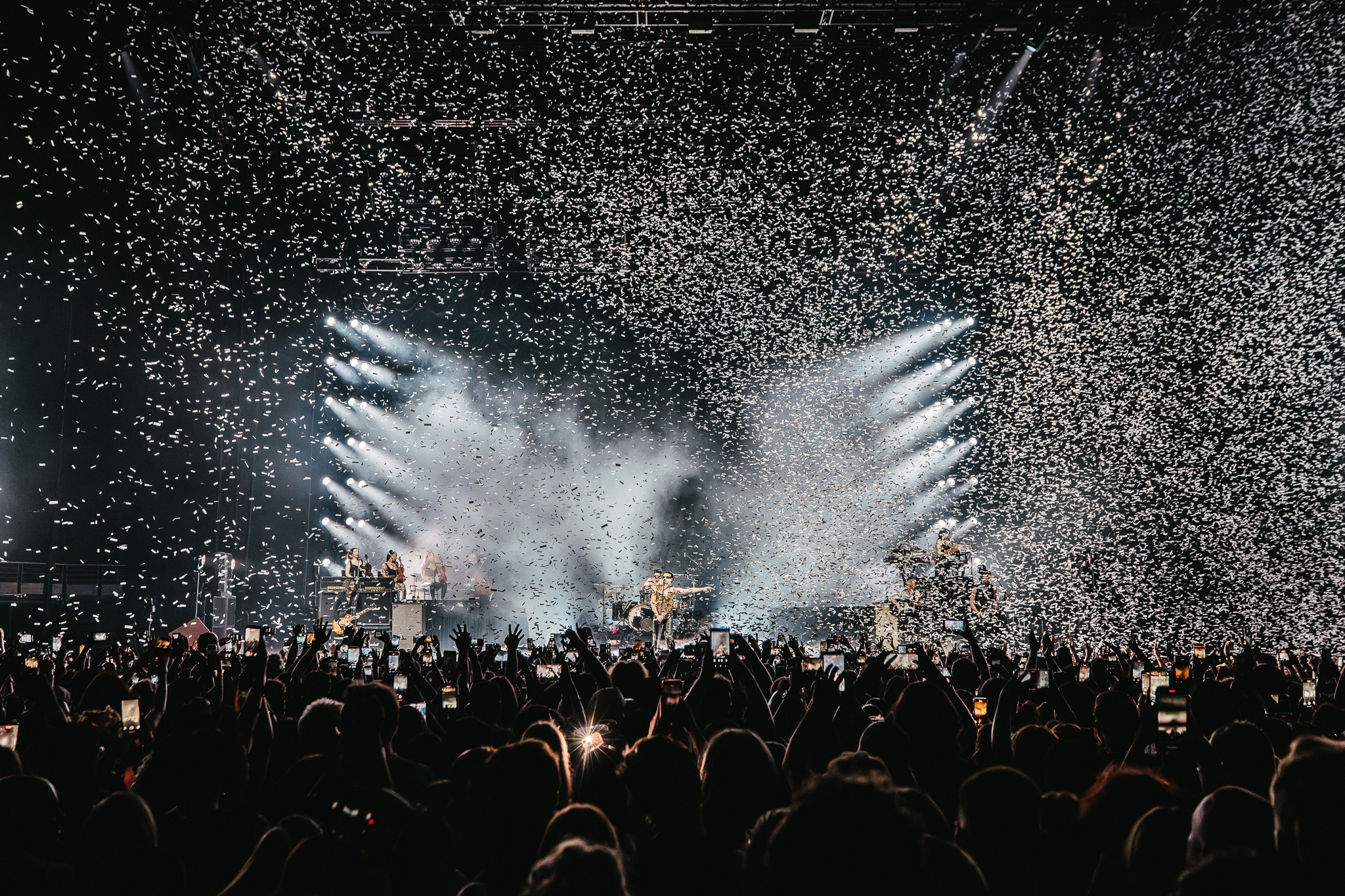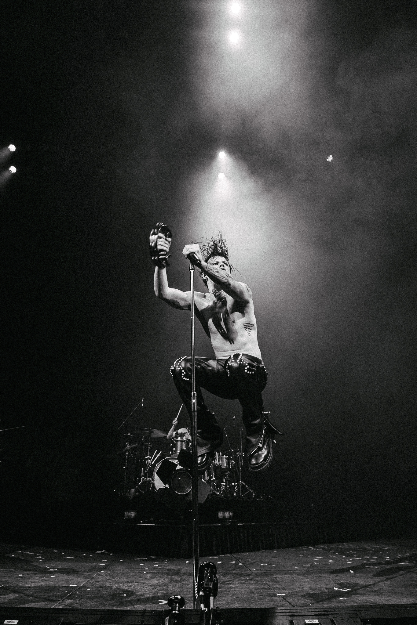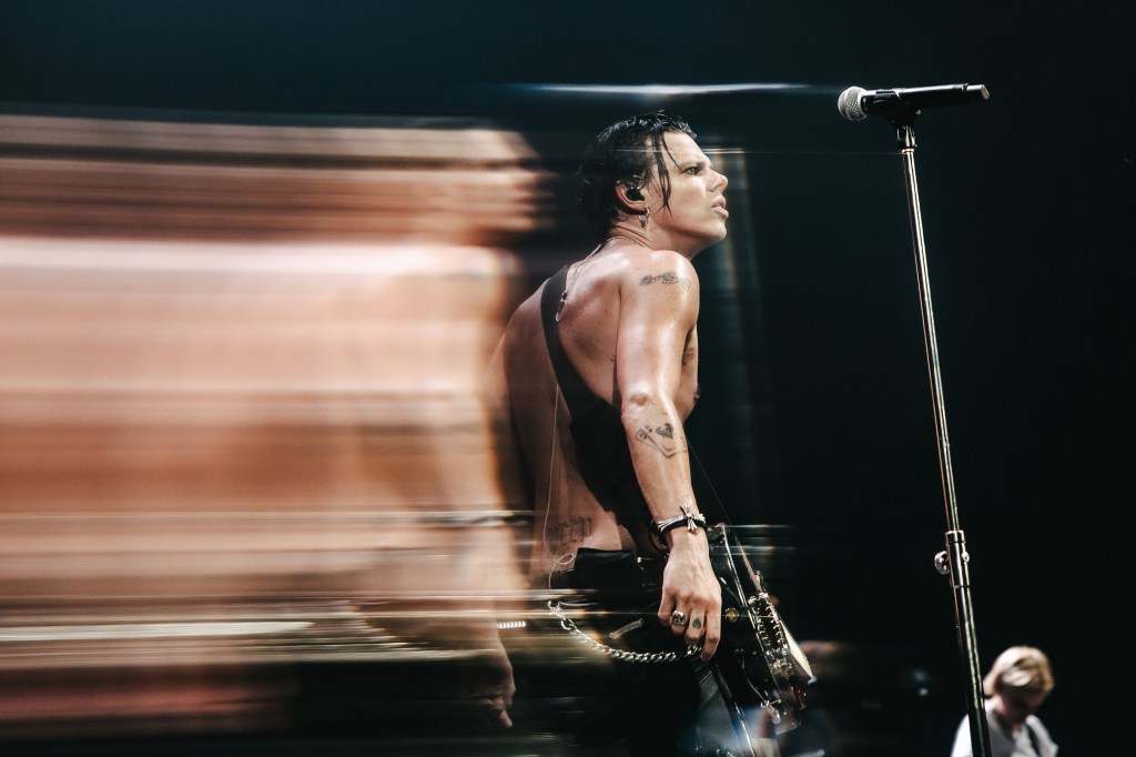 Throughout the night, Yungblud blurred the lines between chaos and vulnerability; with his hair flicking all over his face while singing ‘The Funeral’ followed by ‘Idols Pt’ 1, he was screaming one minute and intimately confessing the next. It felt deliberately unpolished, almost confrontational. He swung between feral punk chaos and soft vulnerability, voice straining just enough to feel dangerous when singing ‘My Only Angel’.